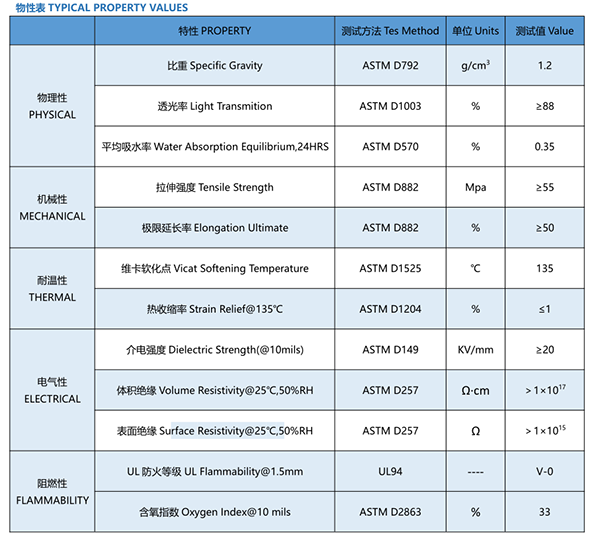 符合 ROHS 欧盟环保标准,通过 UL94-V0 阻燃等级认证,具有优良的透光性、耐热性、膨胀系数小、尺寸稳定。广泛应用于电源